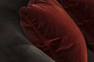 Pillow set of 4 red/cayenne pillows (1,2,3,4) and one (5) Lorenza Bozzoli, 2016 matching with sofa color sold separately.
