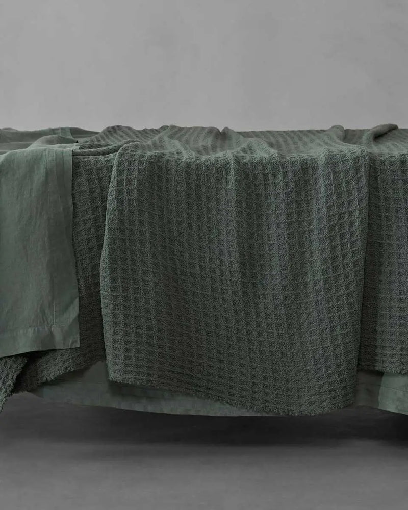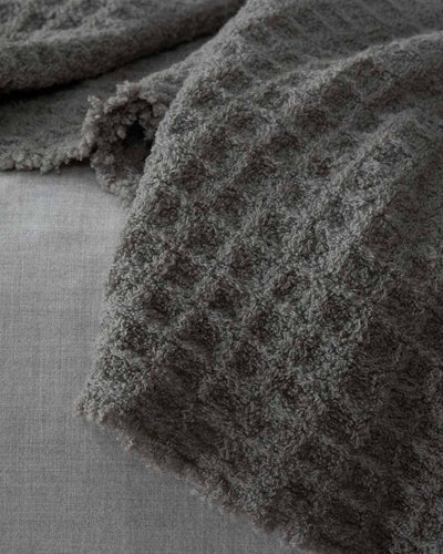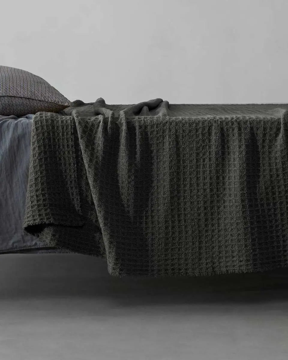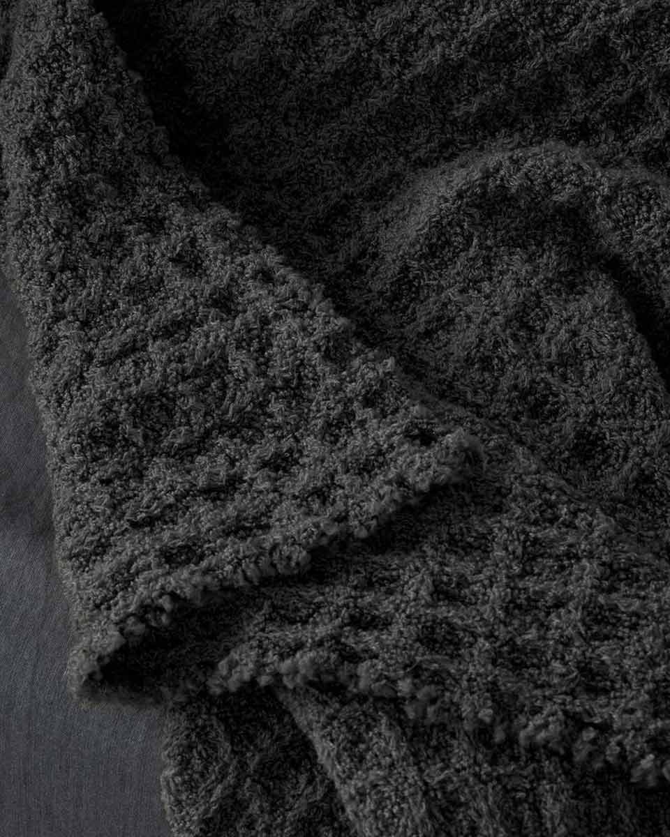 Nidone is a wool throw with a macro waffle weave pattern. Perfect to decorate the end of the bed or to snuggle on the sofa, Nidone has a strong visual impact thanks to the honeycomb tone-on-tone finishing, which makes it light, warm and soft at the same time.