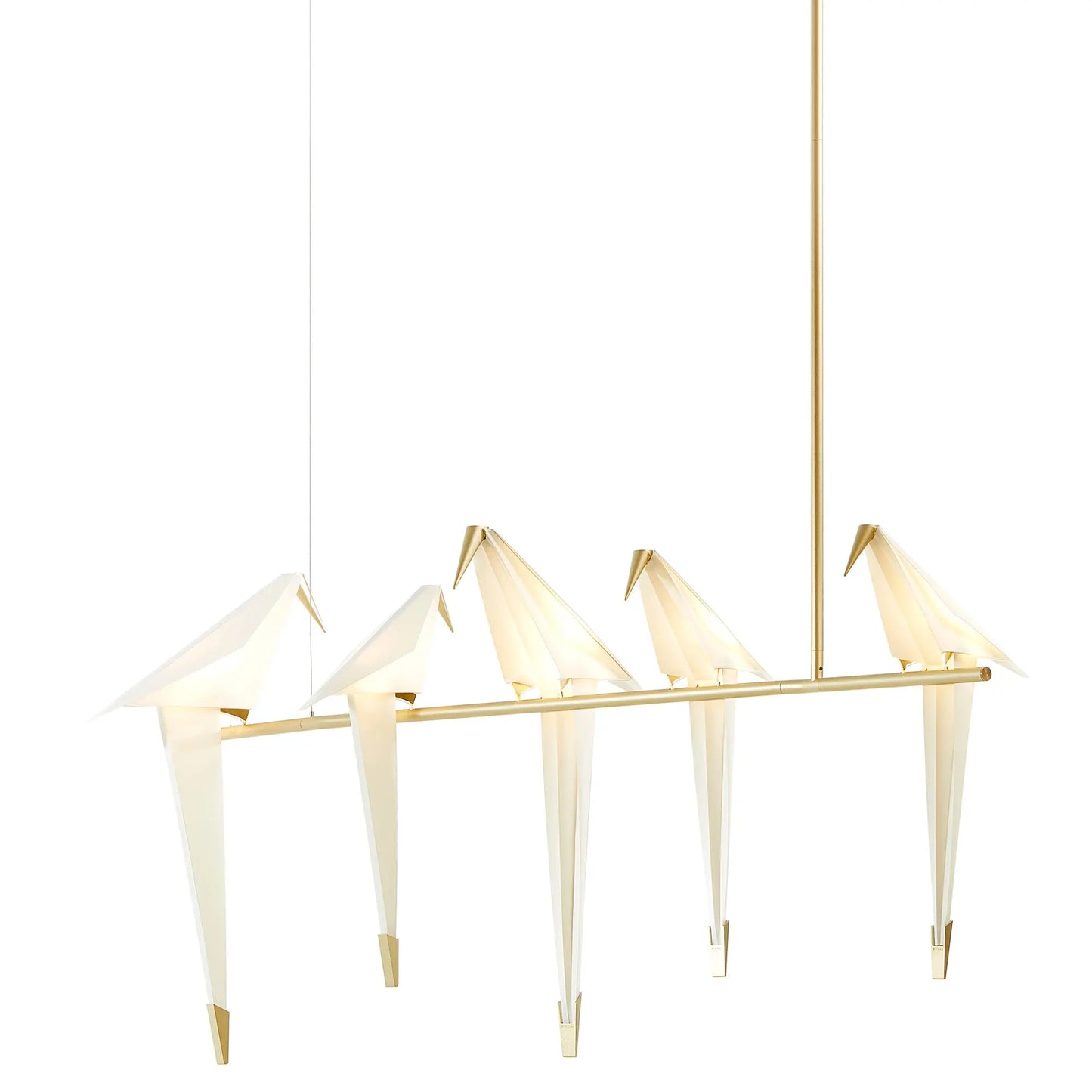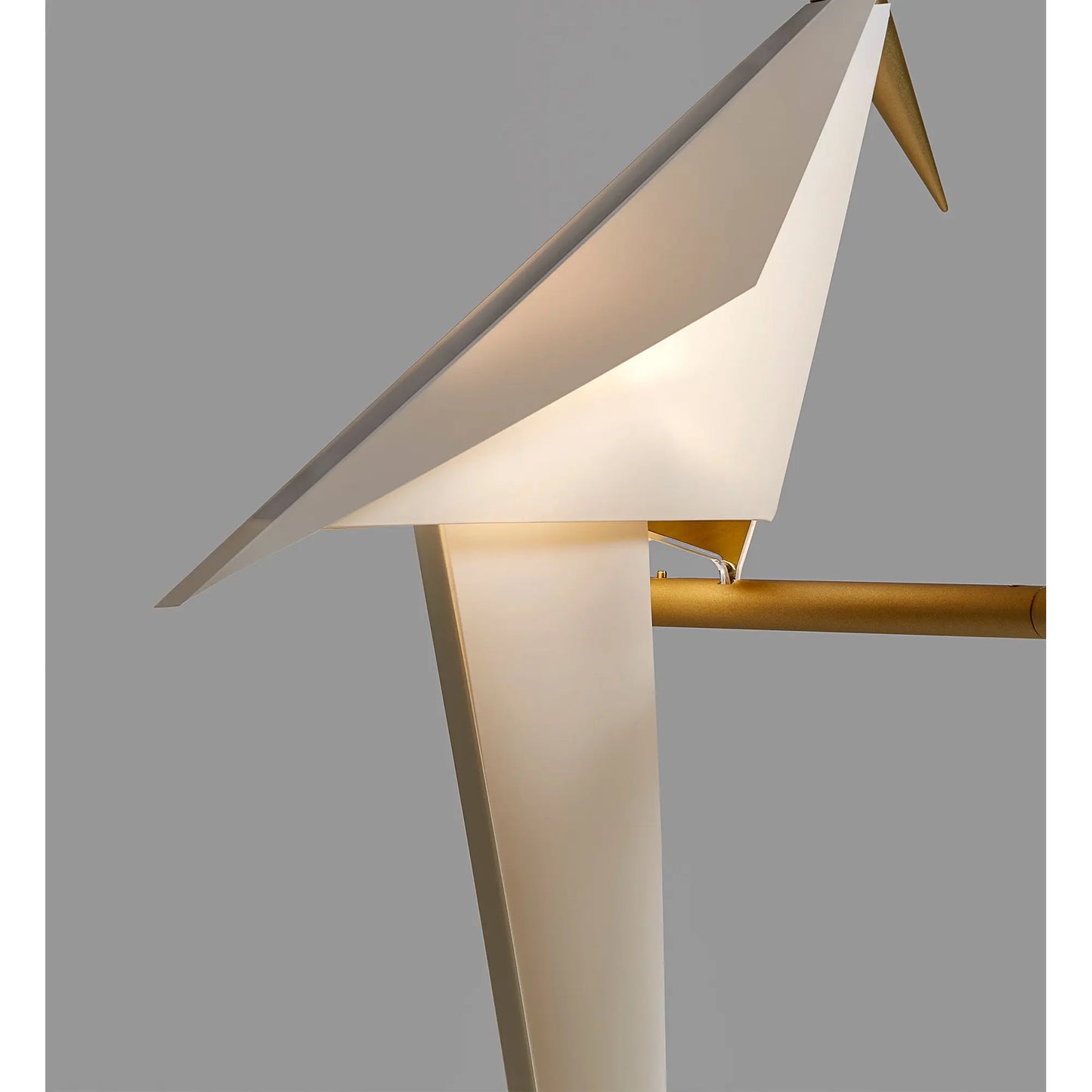 A bird is gracefully balanced on a tall metal perch, beautiful and proud, a swinging glimmer of warm light... yet you are inside after daylight has faded, under the spell of the Perch Light Floor Lamp!