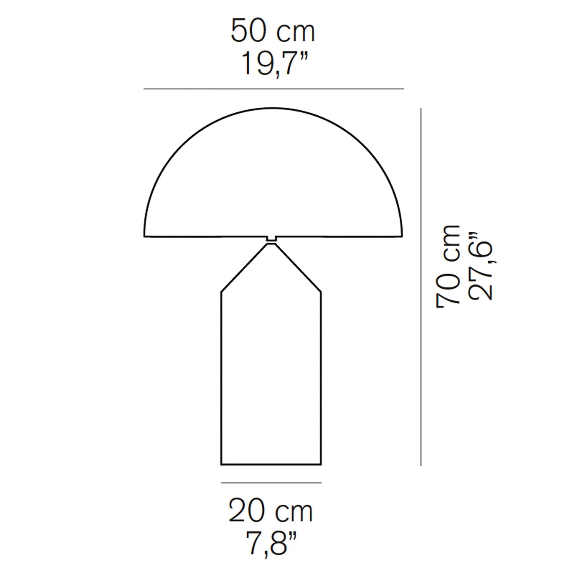 Designed in 1977 by Vico Magistretti, over the years, Atollo has become the archetype of the table lamp, winning the Compasso d’Oro in 1979 and completely revolutionizing the way we imagine the classic bedside lamp. The geometric shapes that compose it – cylinder, cone and hemisphere – have resulted in a product that is decorative and essential at the same time, disconnected from the historical period and the fashions of the moment, and one that has now fully become one of the icons of Italian design. Atollo is available in three different sizes and in different finishes: white, black, satin bronze or satin gold metal.