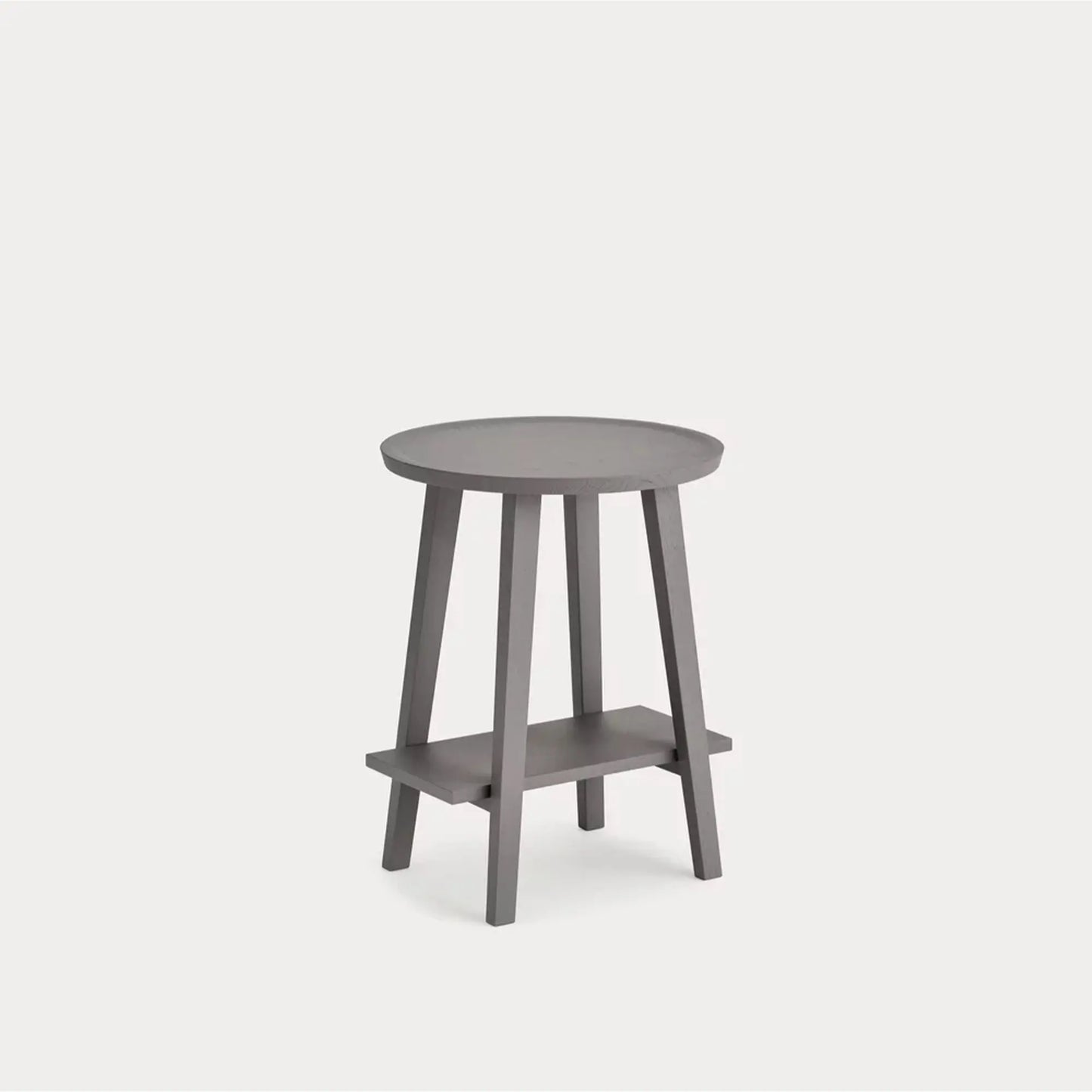 Single-material Gervasoni night table, LC 45 is made of solid Canaletto walnut available in the following colors: natural, black, white, grey, ocean, dove-grey, blueberry, date or ginger. It is characterized by the overlapping of two different geometric shapes: an upper circle and a lower rectangle enclosed between the legs of the night table. A product with a strong character, adaptable to different types of homes.