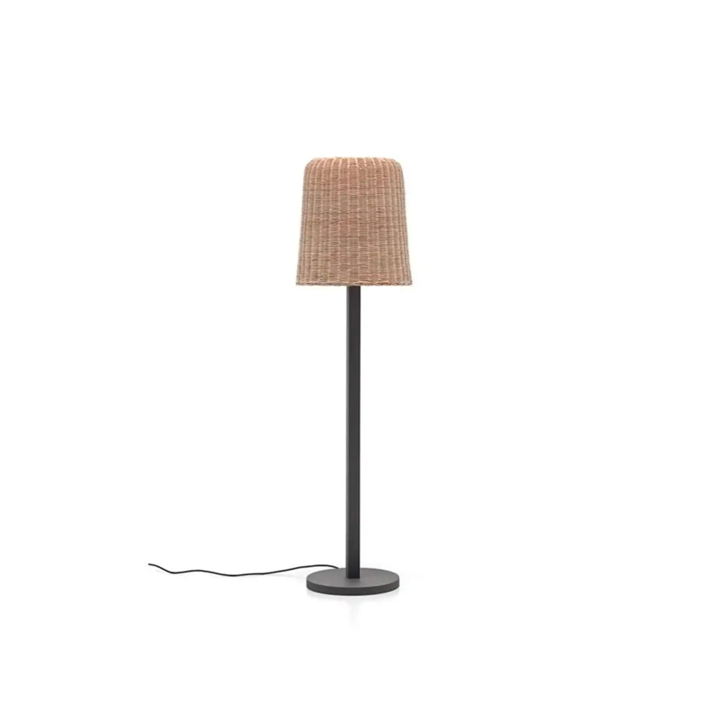Floor lamp in American walnut. Handwoven natural unfinished rattan core shade.