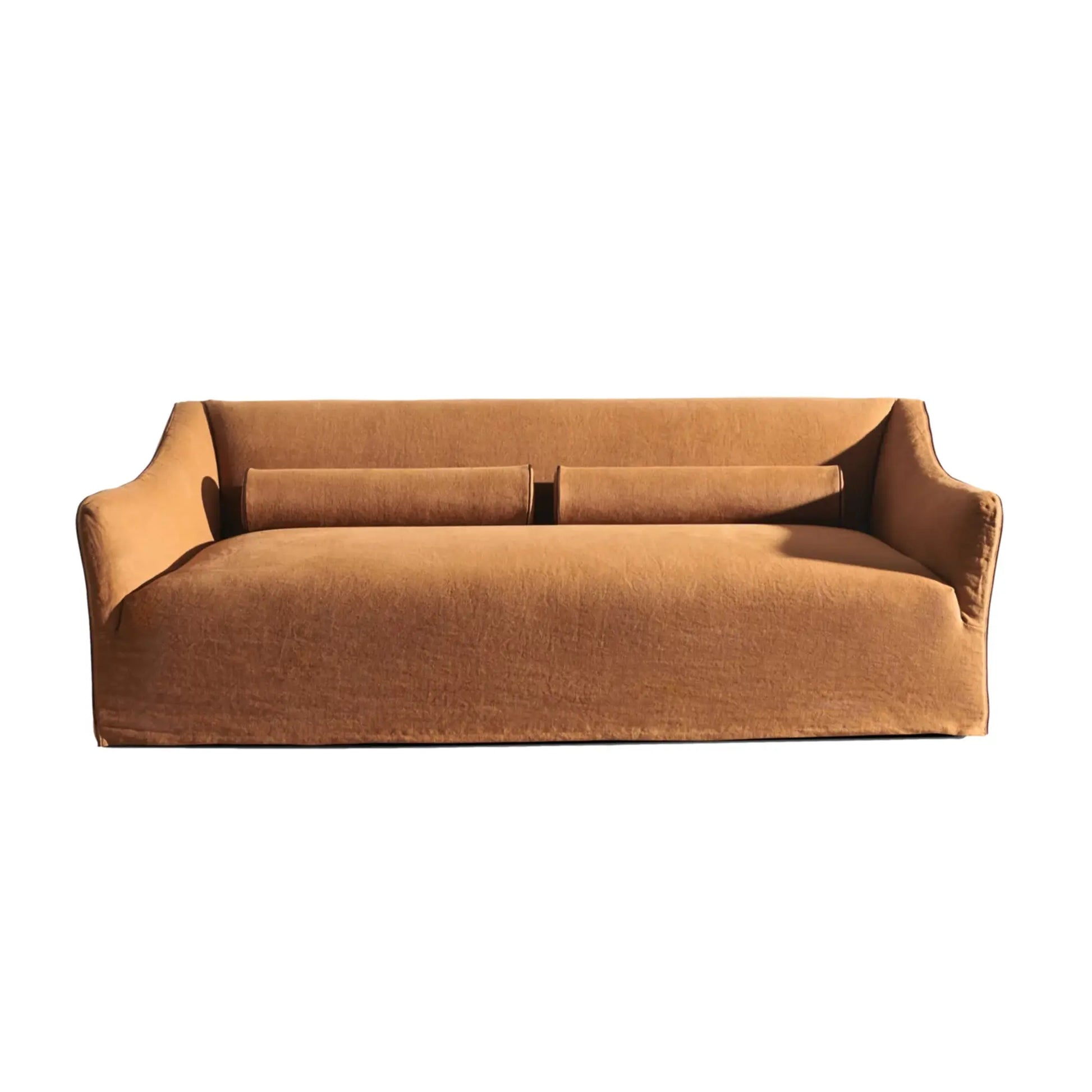 Gervasoni sofa upholstered with polyurethane foam in varied densities with pocket spring seat. Two dow, roll cushions. Removable cover with piping.