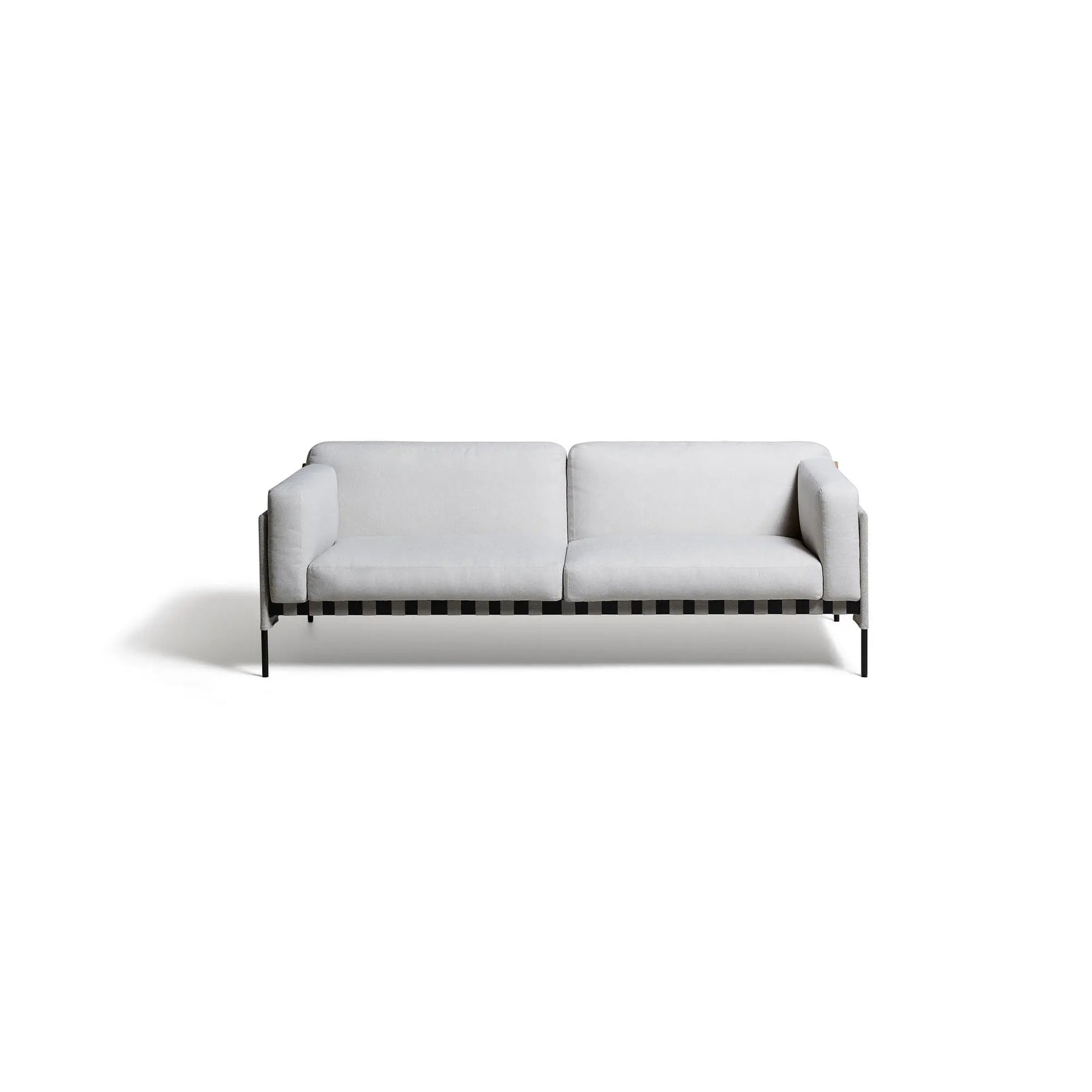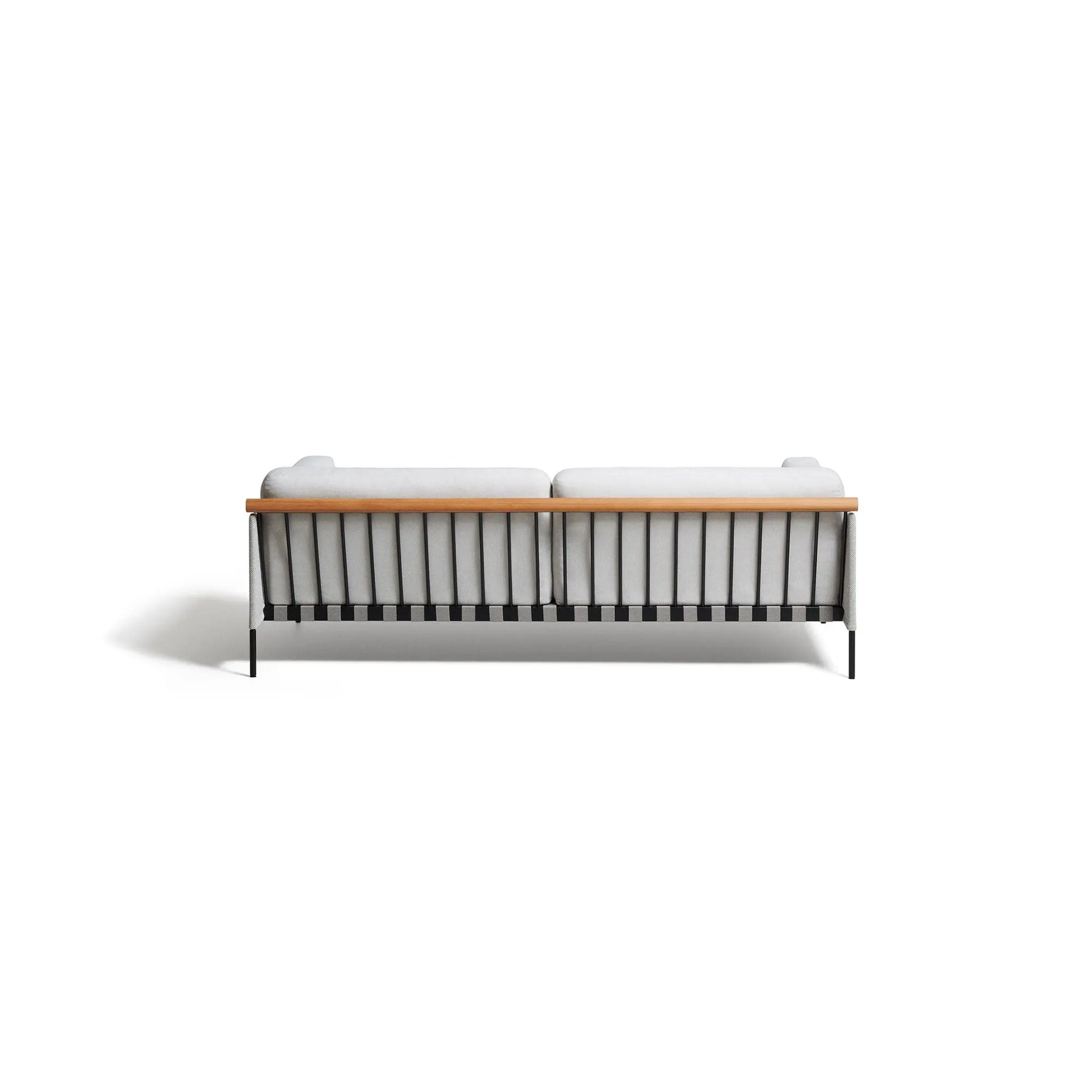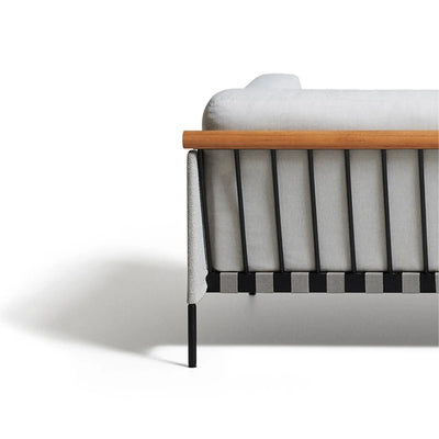 Étiquette is a Scandinavian-inspired project that dialogues with superior Italian craftsmanship. Developed by design duo GamFratesi, the model includes a sofa, pouf, and armchairs. The indoor piece lends itself perfectly to the outdoors thanks to a selection of finishes. The outdoor version features a body in matte black painted stainless steel that is complemented by elastic straps in water-repellent fabric and a wood bar in natural teak.