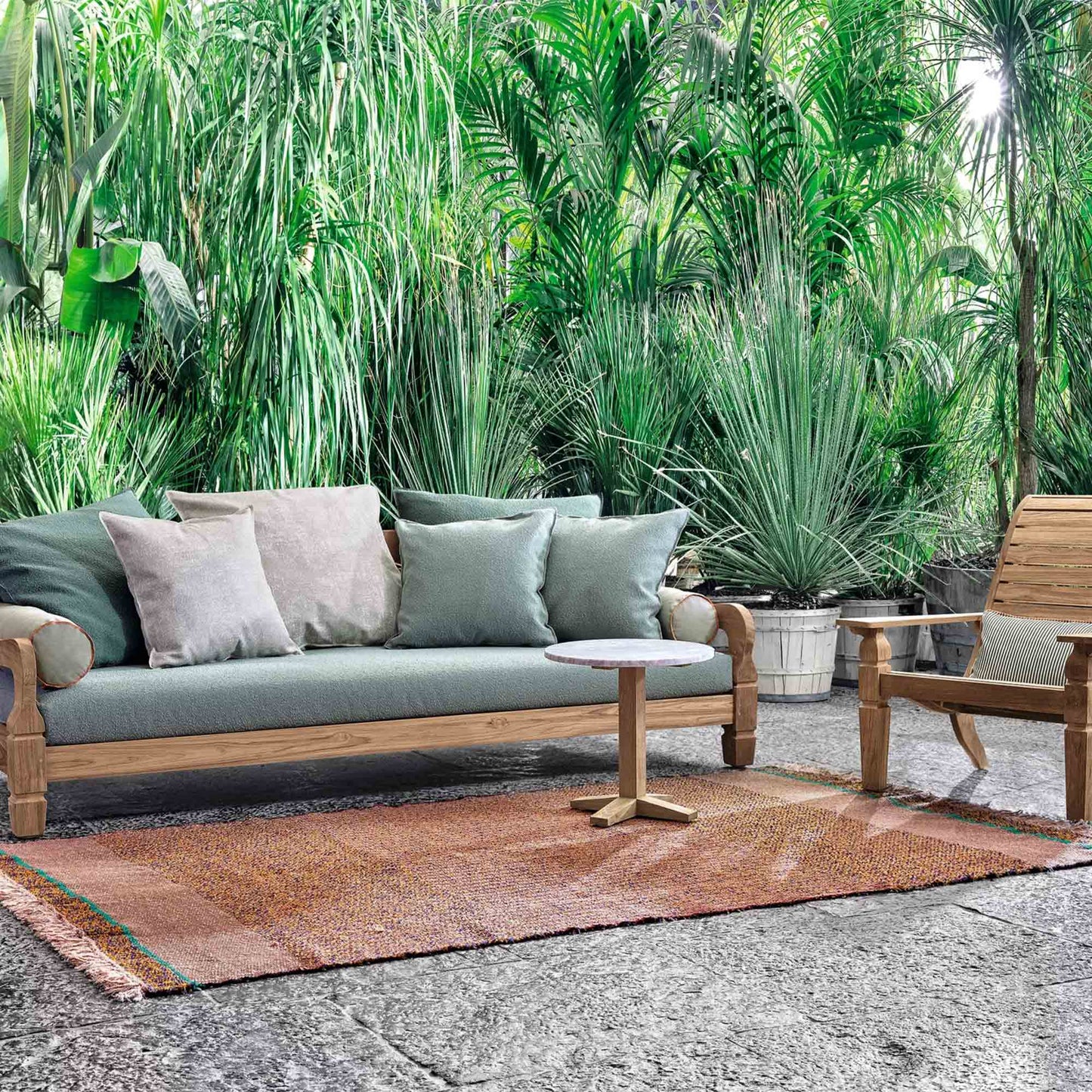 The synthesis of tradition and innovation is also palpable in the choice of materials: jute and propylene are both suitable for outdoor use and are water resistant.